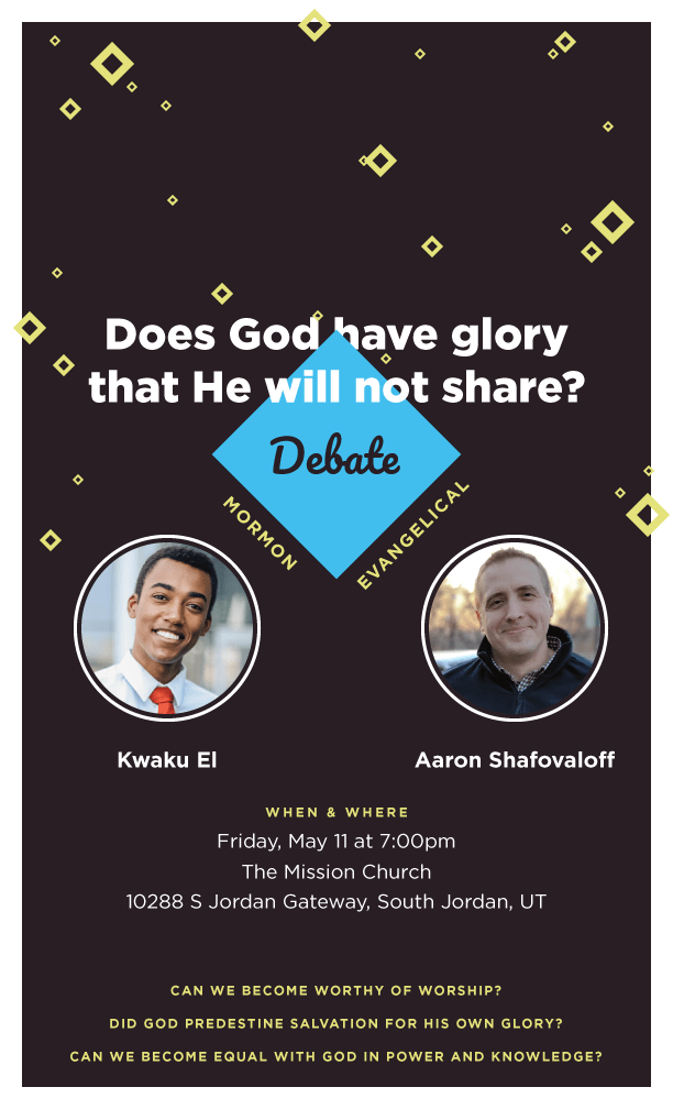 On May 11 Kwaku El and I will debate the question, “Does God have glory that he will not share?” You are invited to come!