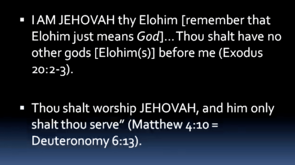 And then finally, in the first commandment of Exodus 20:2-3: “I am Jehovah thy God; thou shalt have no other gods before me.”