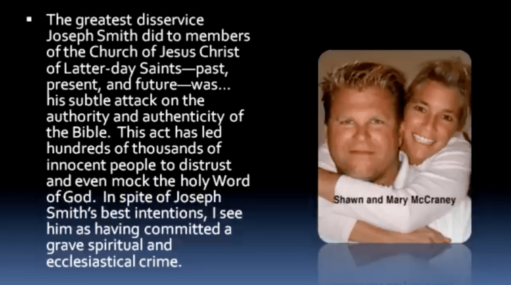 “The greatest disservice Joseph Smith did to members of the Church of Jesus Christ of Latter-day Saints, past, present, and future, was his subtle attack on the authority and authenticity of the Bible. This act has led hundreds of thousands of innocent people to distrust and even mock the holy word of God. In spite of Joseph Smith’s best intentions, I see him as having committed a grave spiritual and ecclesiastical crime.”