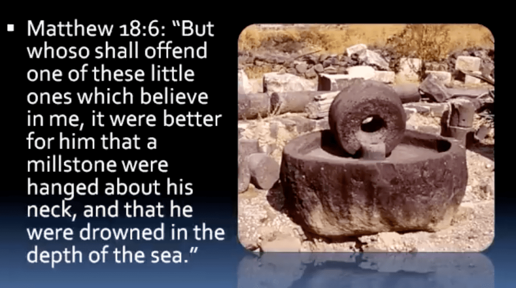 “But whoso shall offend one of these little ones which believe in me, it were better for him that a millstone were hanged around his neck, and that he were drowned in the depth of the sea.”